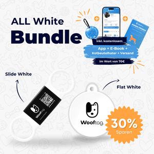 SEHR BELIEBT - Eine der Sichersten Hundemarken in Deutschland & Europa! Spare im Bundle: Du erhältst 1x Wooftag Flat White, 1x Wooftag Slide White & 2x exklusive Geschenke im Gesamtwert von 160 €.